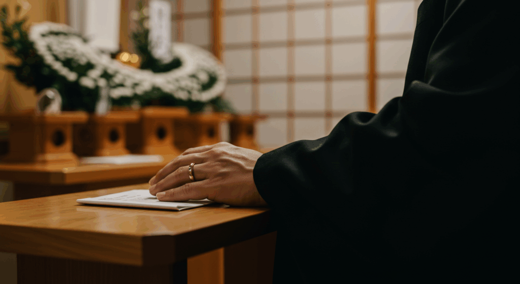 - 他の指で隠す:親指や小指を使って、さりげなく結婚指輪を隠す方法もあります。特にお焼香など人前に出る場面では有効です。